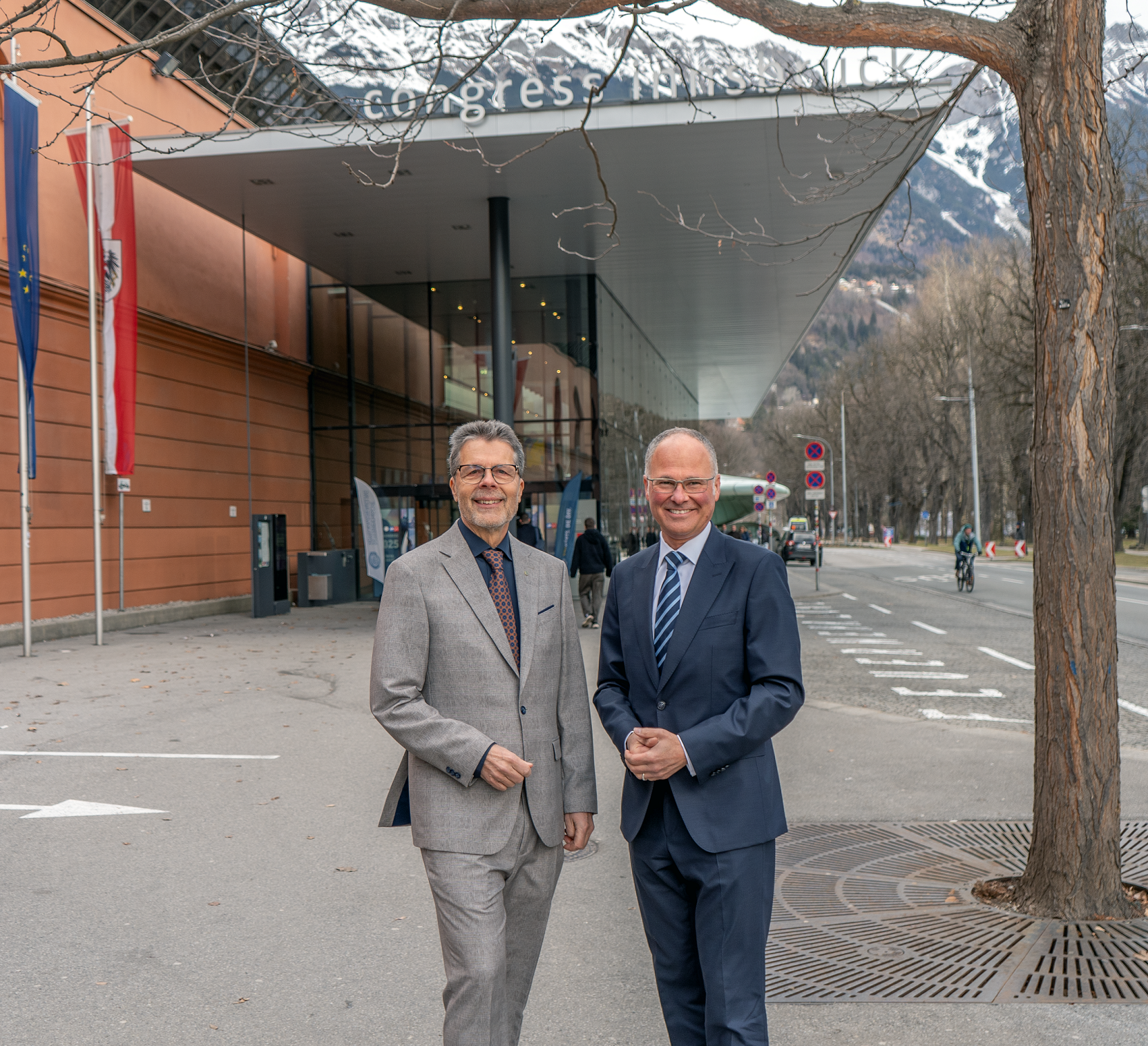 ÖHV President Walter Veit (l.) and CMI Managing Director Christian Mayerhofer (r.) in front of Congress Innsbruck.